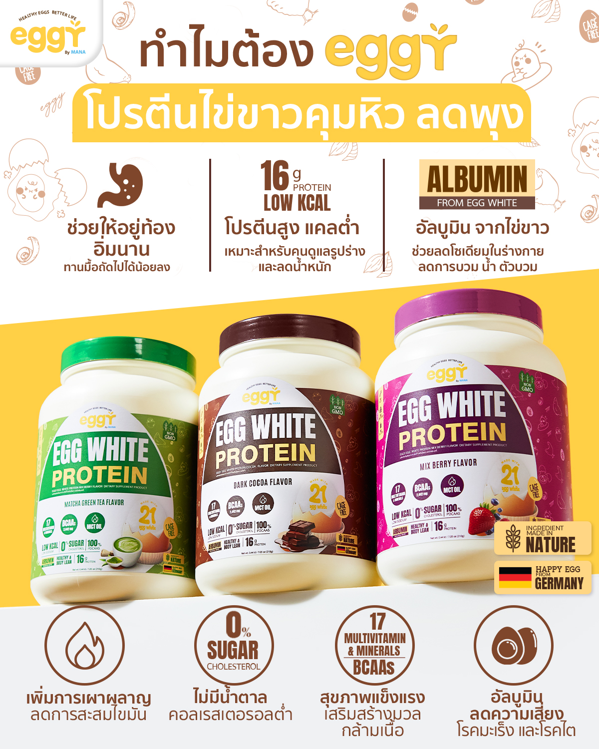 Eggy Protein โปรตีนไข่ขาว โดยสนยุกต์ คืออาหารเสริมโปรตีนคุณภาพสูง ที่ช่วยเสริมสร้างกล้ามเนื้อ ฟื้นฟูร่างกายหลังออกกำลังกาย และดูแลน้ำหนักให้สมดุล ด้วยรสชาติอร่อย ทานง่าย ผสานคุณค่าจากไข่ขาวบริสุทธิ์ ปราศจากน้ำตาลและสารเติมแต่งที่ไม่จำเป็น เหมาะกับทุกไลฟ์สไตล์ของสายสุขภาพ หากคุณอยากมีร่างกายแข็งแรง ผิวพรรณสดใส และรู้สึกกระปรี้กระเปร่าในทุกวัน Eggy Protein คือคำตอบที่คุณไม่ควรพลาด